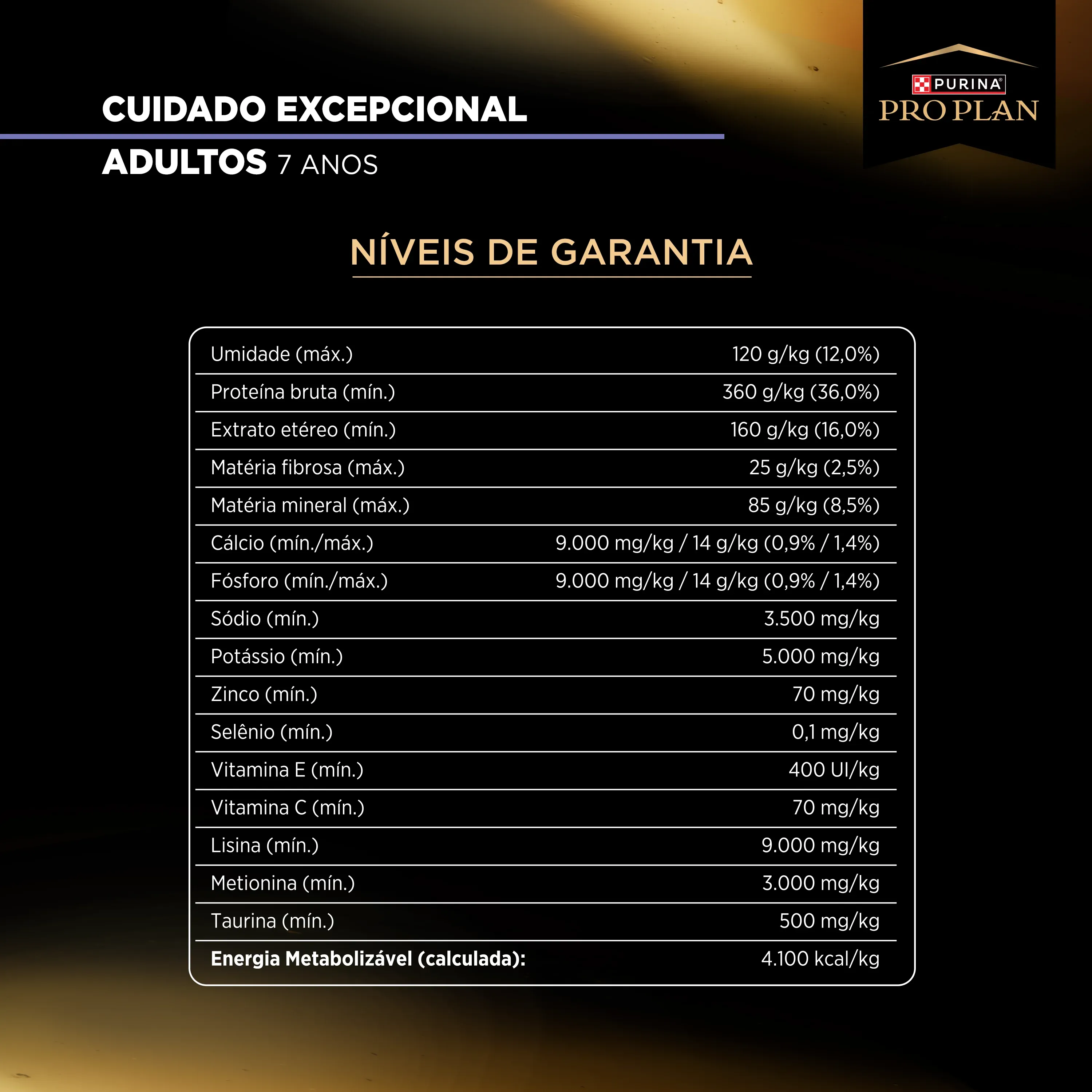 | Energia Metabolizável (calculada) 4.100 kcal/kg | - | - |