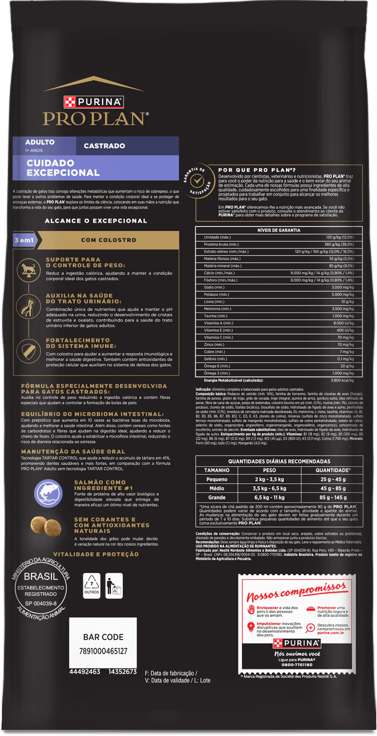PURINA® PRO PLAN® Cuidado Excepcional Castrado com Salmão