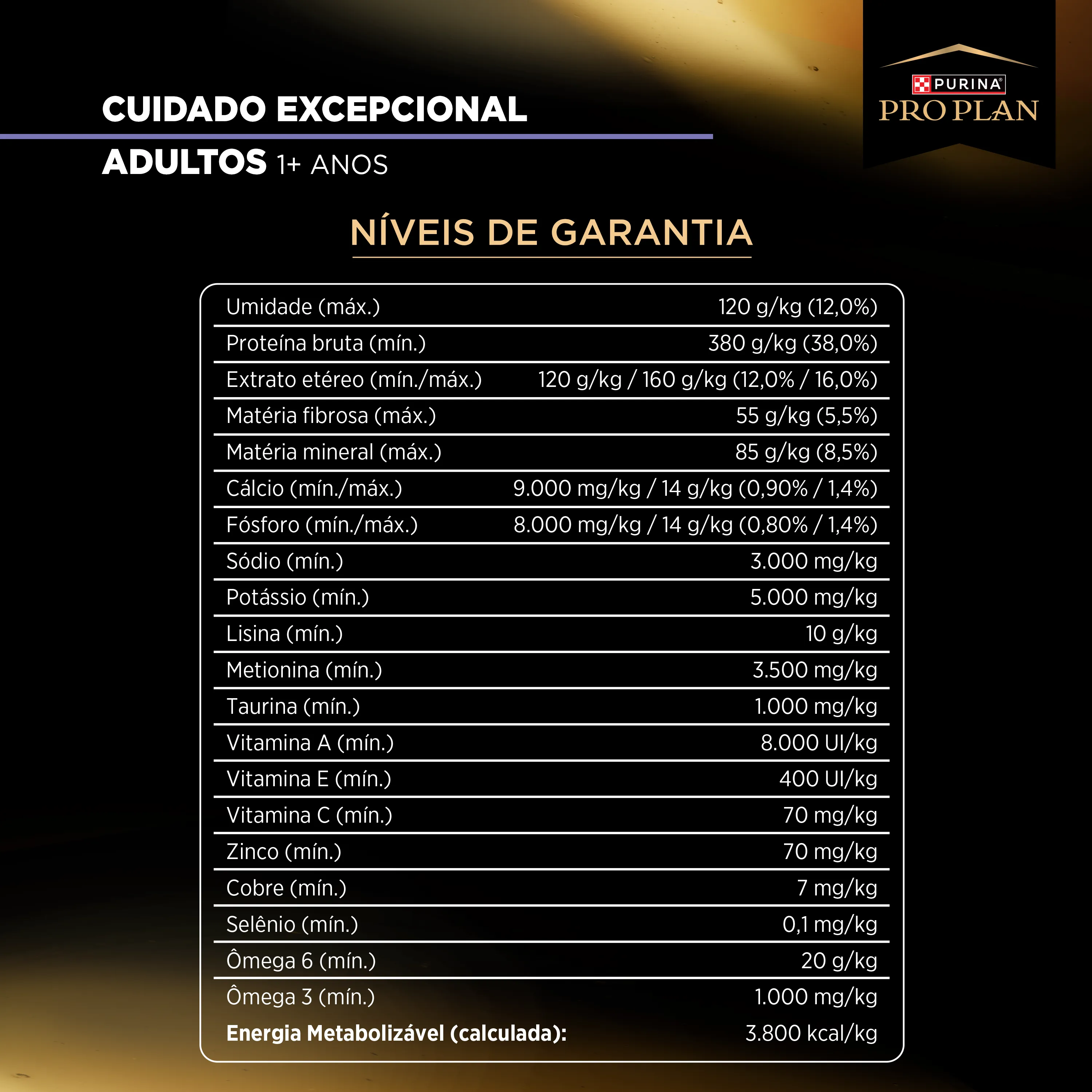 | Energia Metabolizável (calculada): 3.800 kcal/kg |