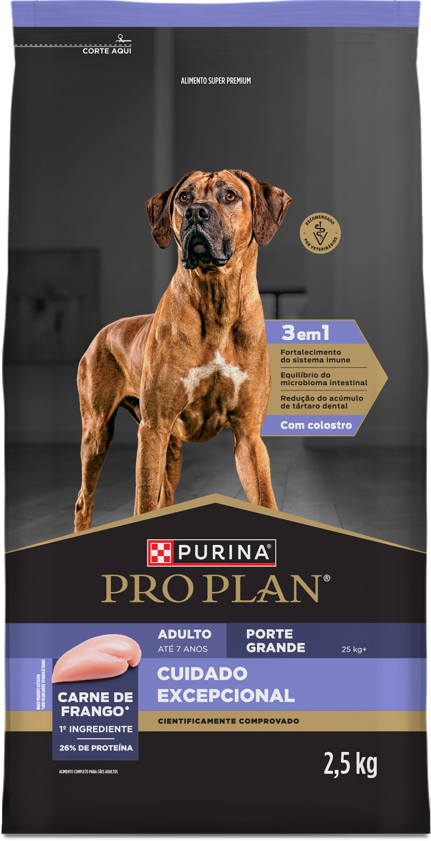 .CARNE DE FRANGO COMO PRIMEIRO INGREDIENTE.26% DE PROTEÍNA.3 EM 1:...