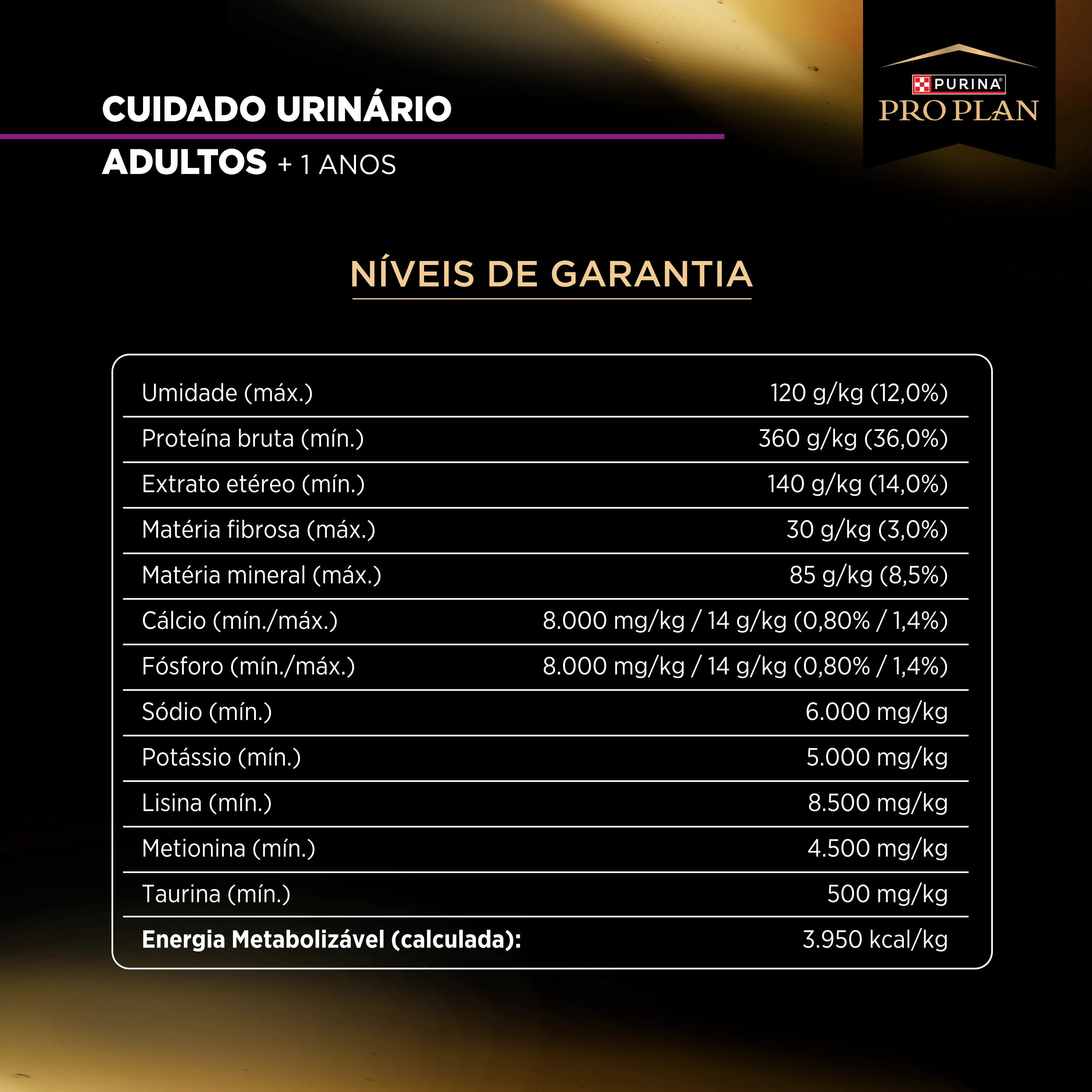| Energia Metabolizável (calculada): 3.950 kcal/kg |
