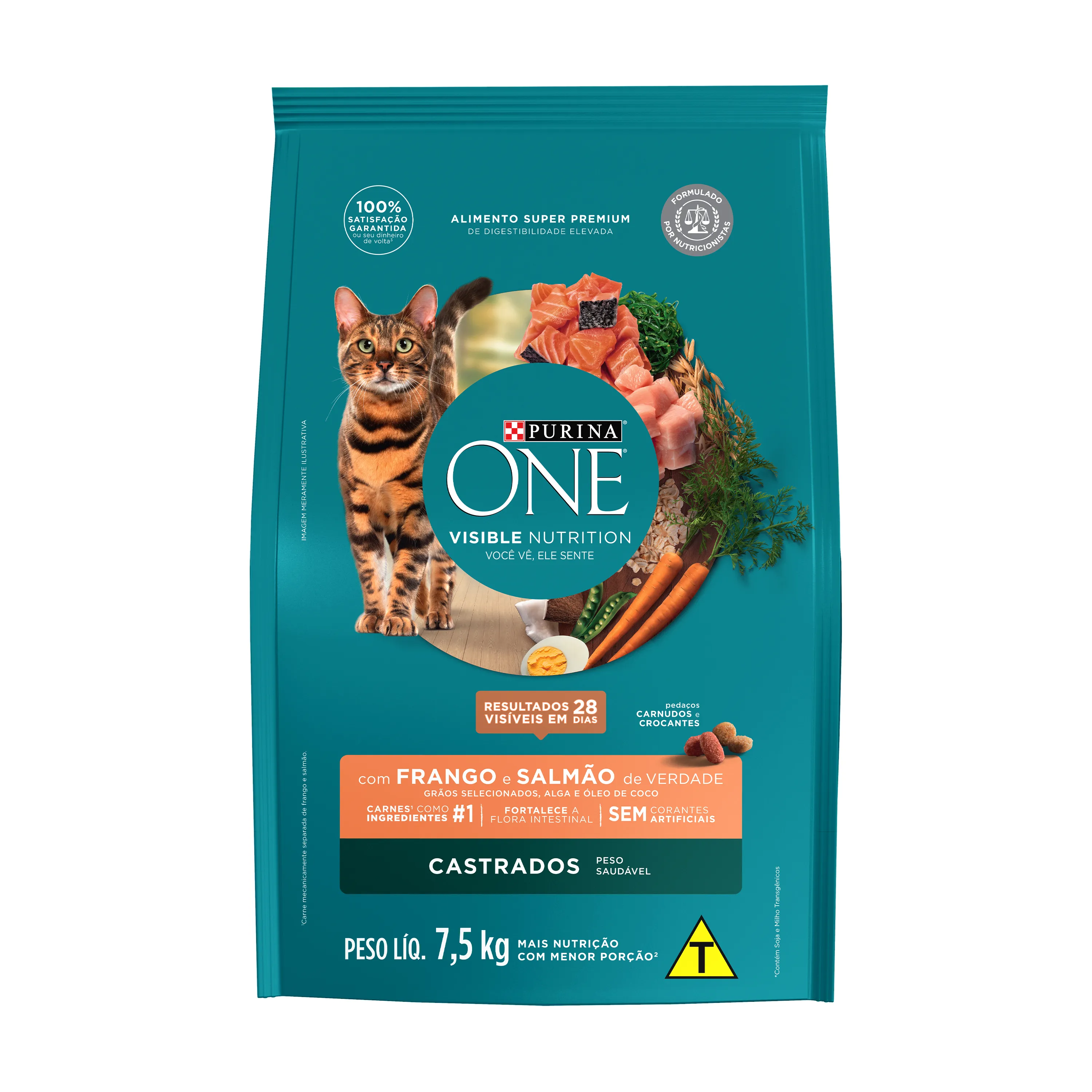 ONE® Alimento Seco para Gatos castrados sabor frango e salmão