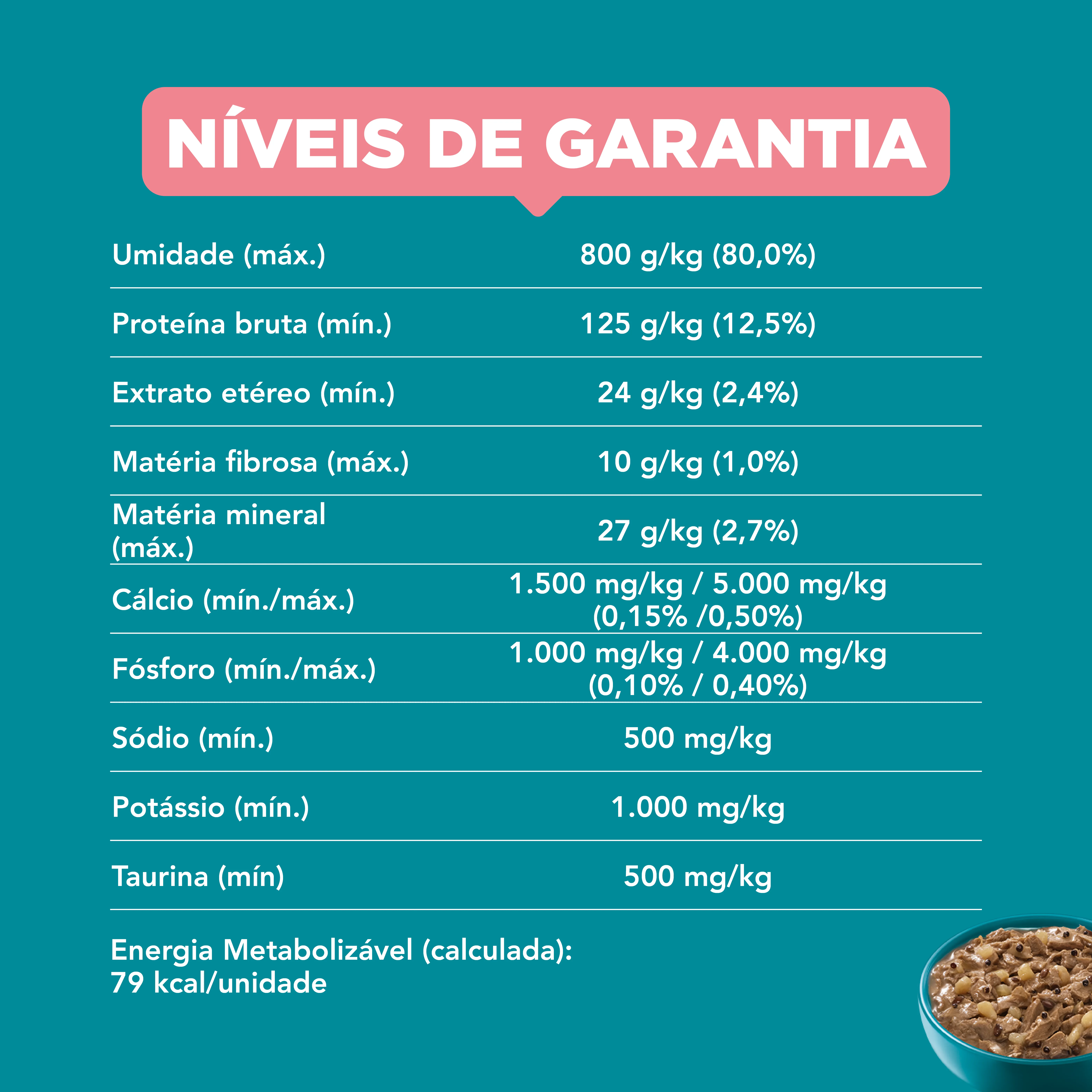 Eventuais Substitutivos: carcaça de frango, atum, fígado de frango, miúdos de suínos, difosfato trissódico.